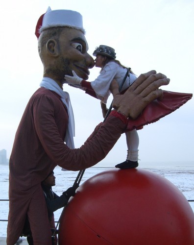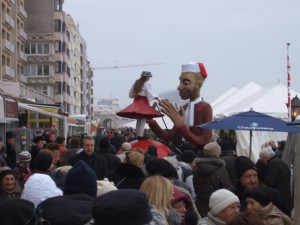 De Wereldwandelaar en het vrolijk dansende duo van Join the Parade zijn leuke blikvangers op kerstmarkten en evenementen.